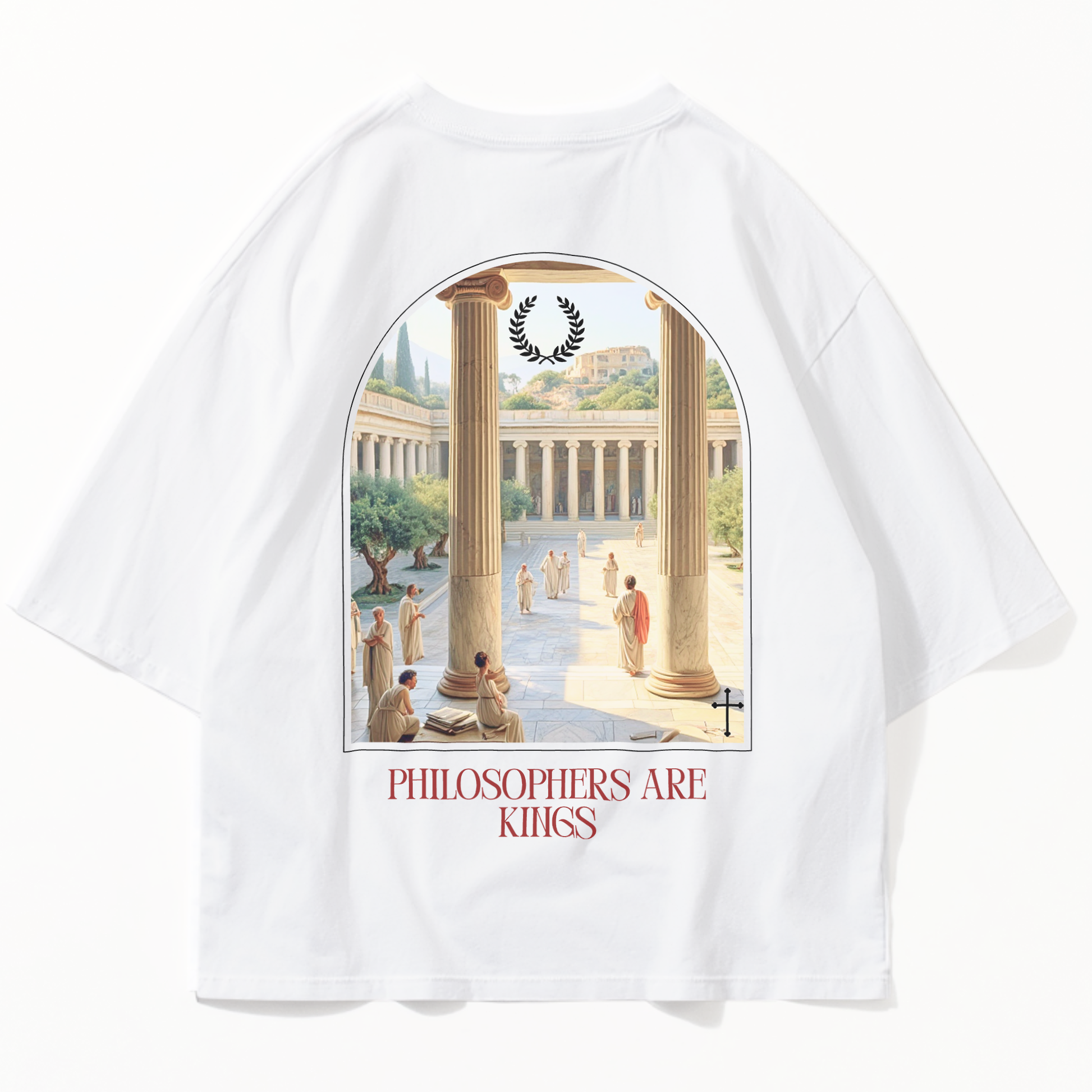 Beneath the artwork, Philosophers Are Kings marks the creed.