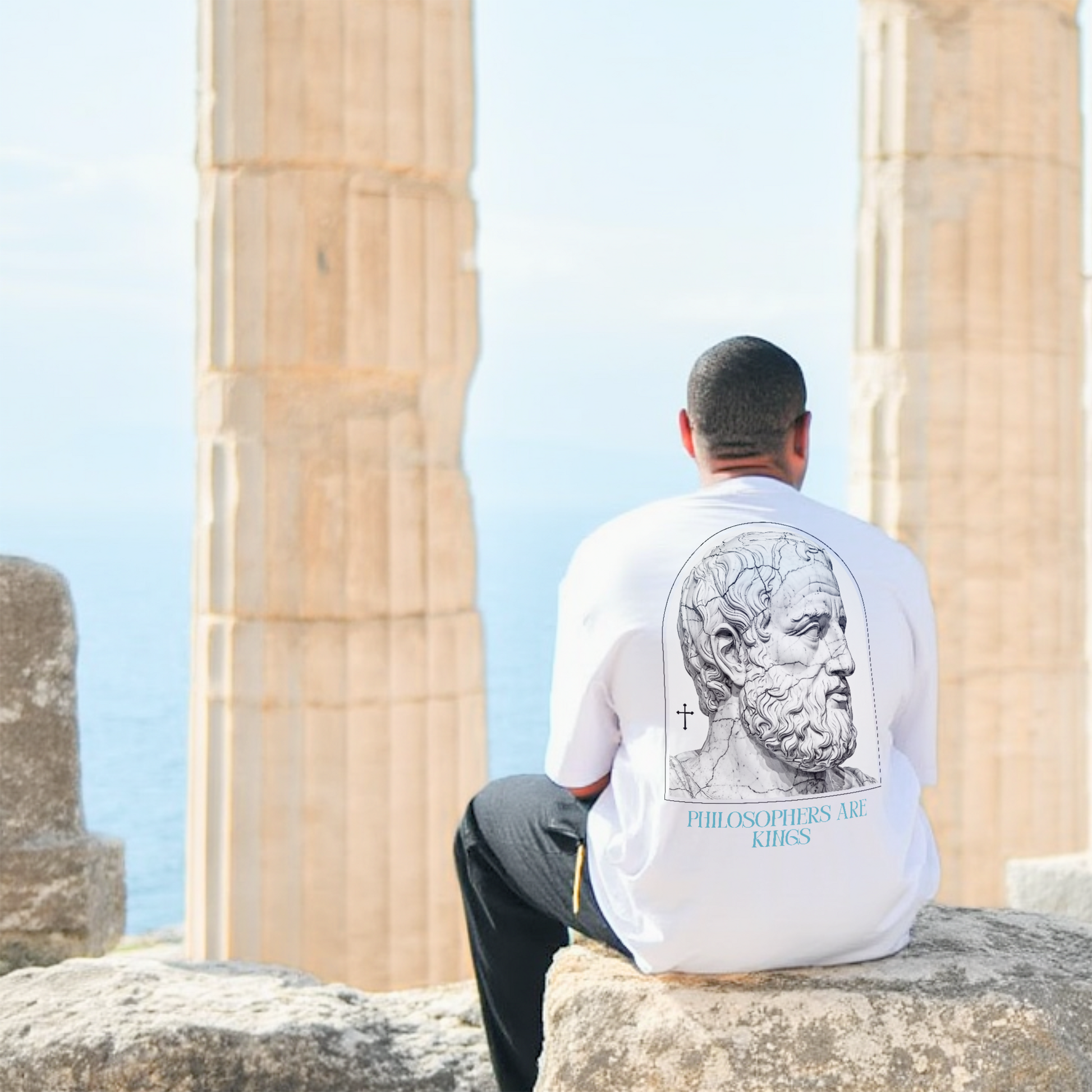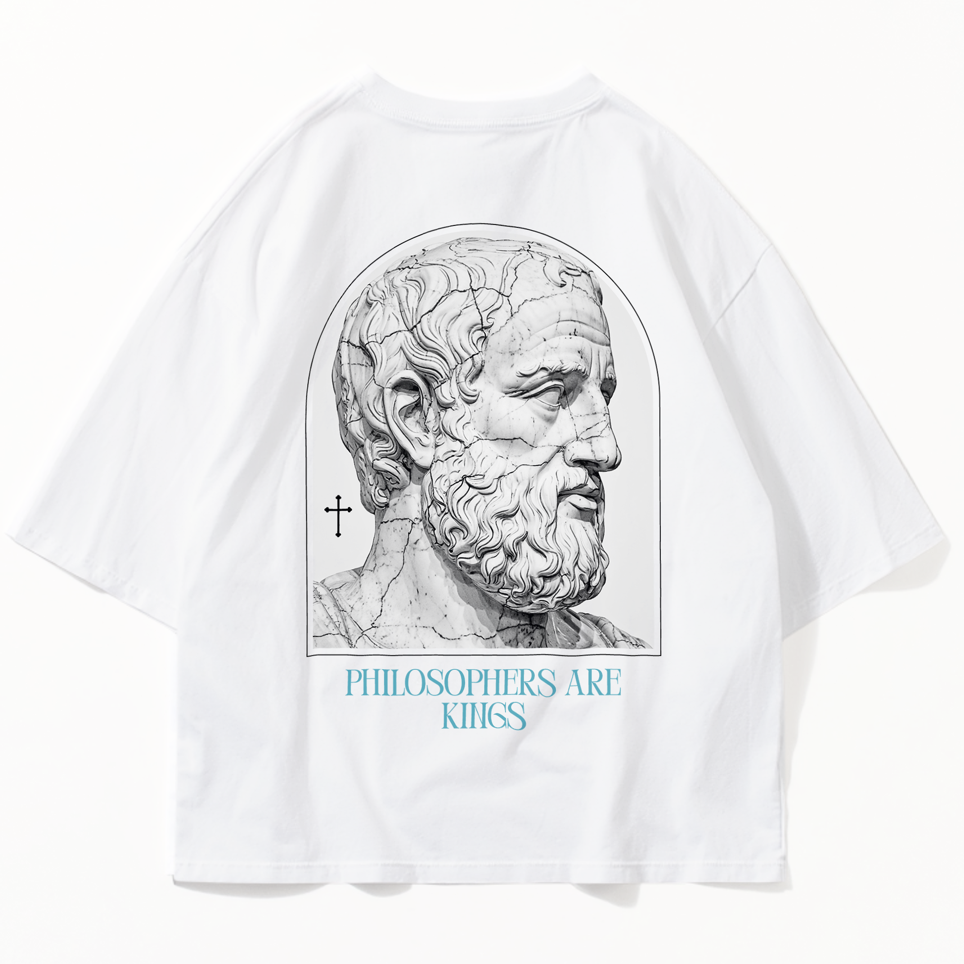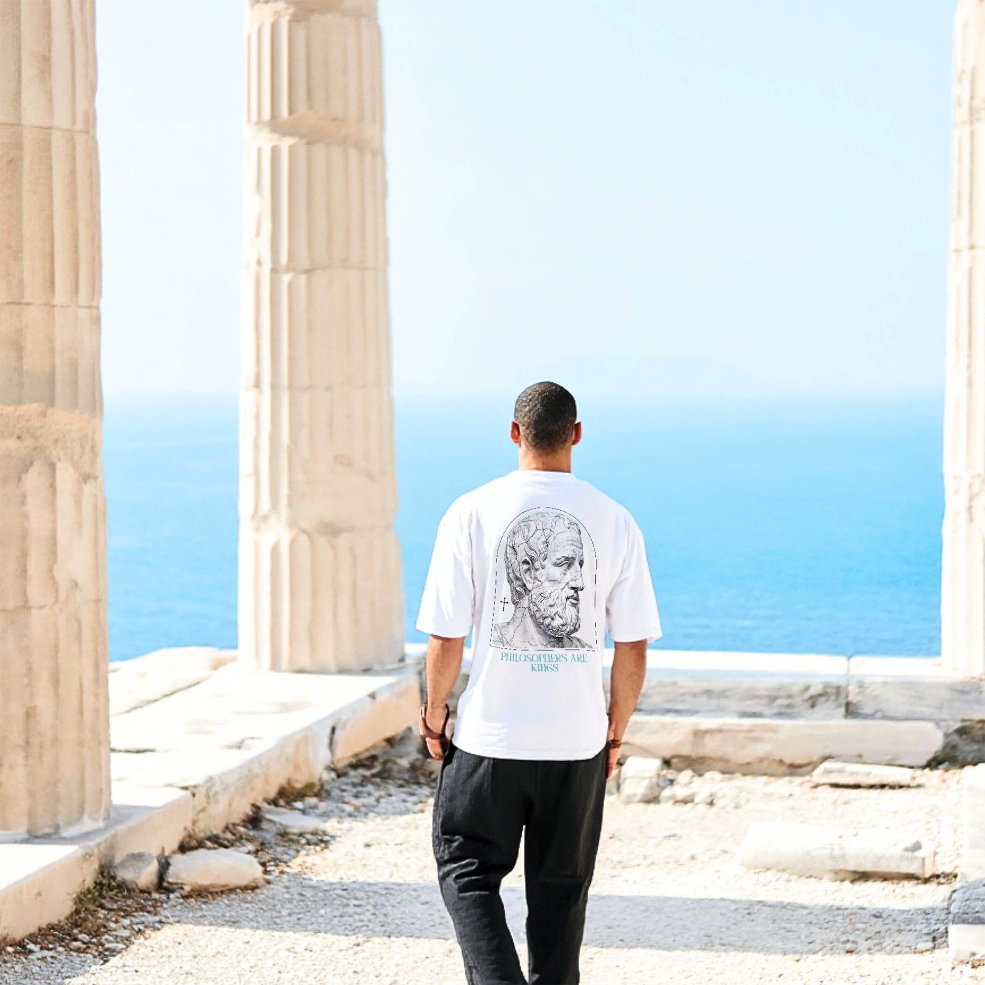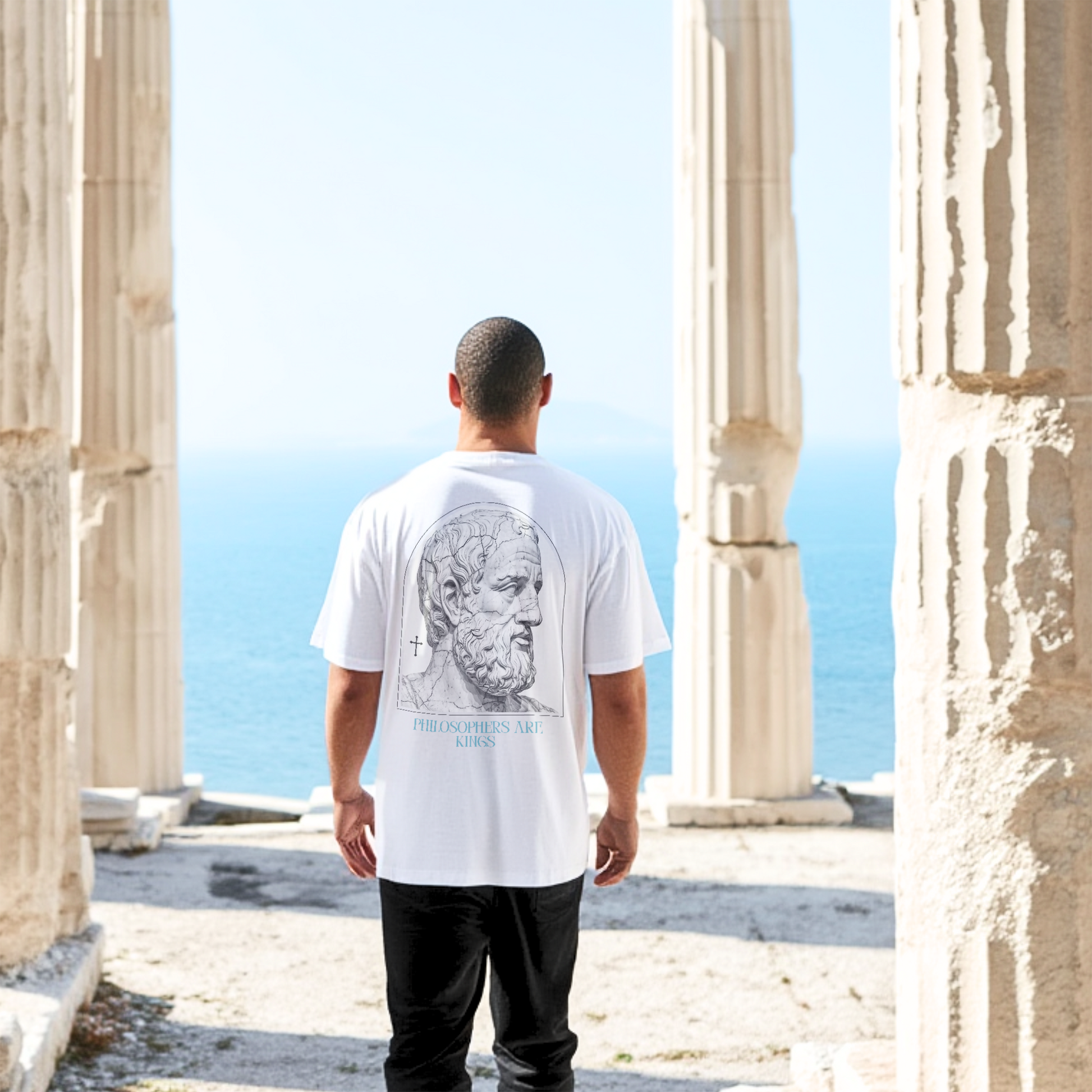 The Aspiration Tee features a classical sculpted visage emerging from grain and marble. Greatness is not inherited, but shaped. The upward gaze reflects the philosophical pursuit of a man reaching beyond comfort toward discipline, clarity, and higher ideals.