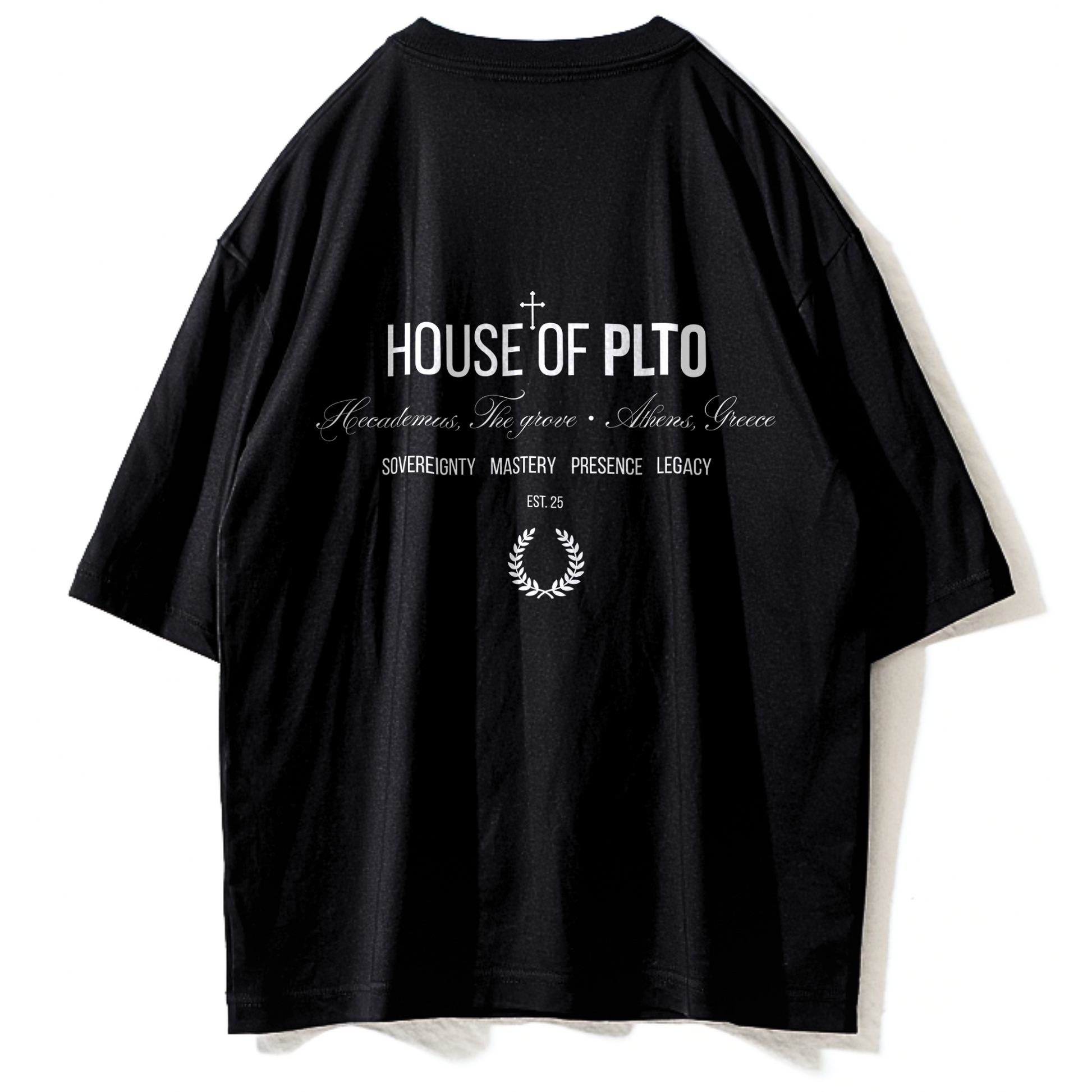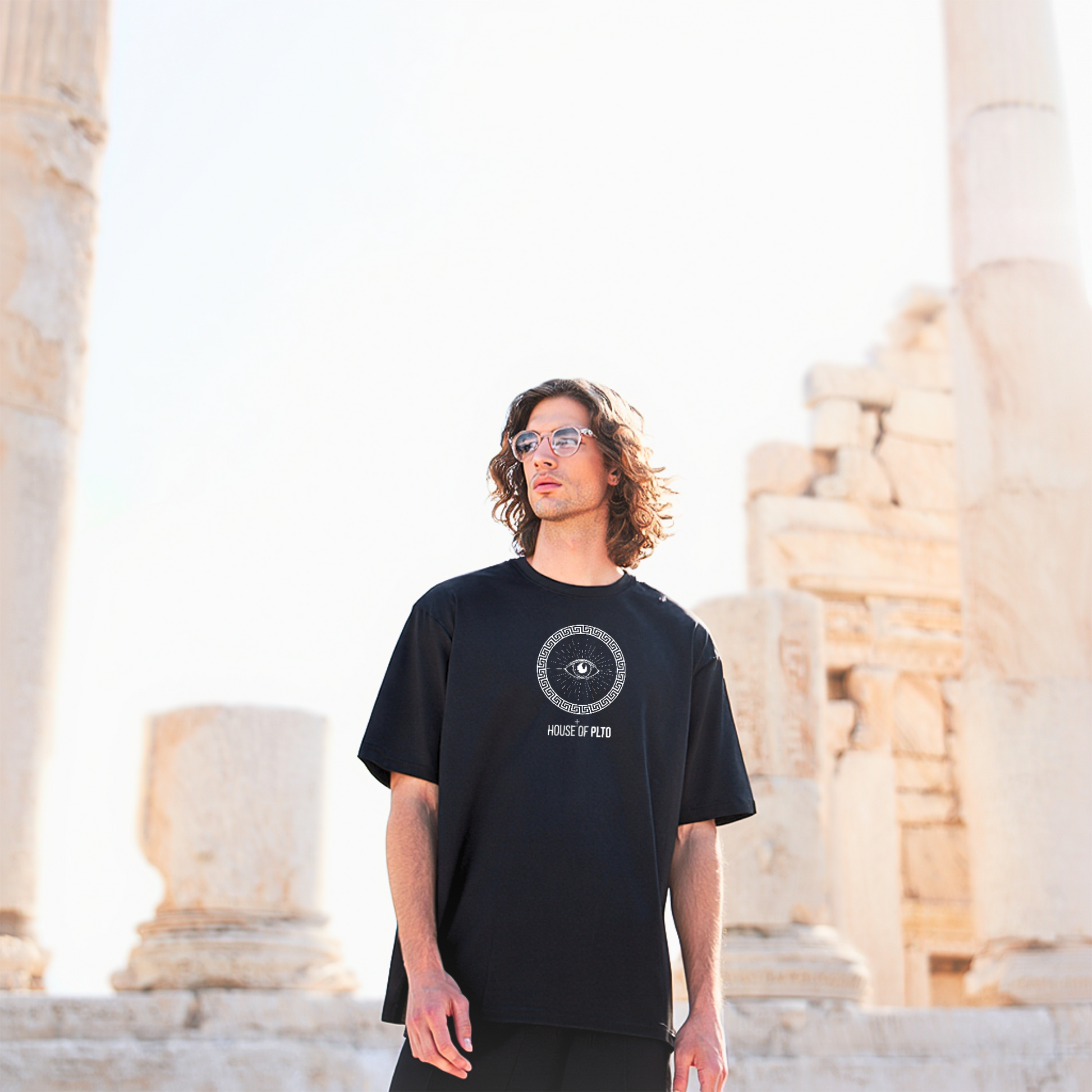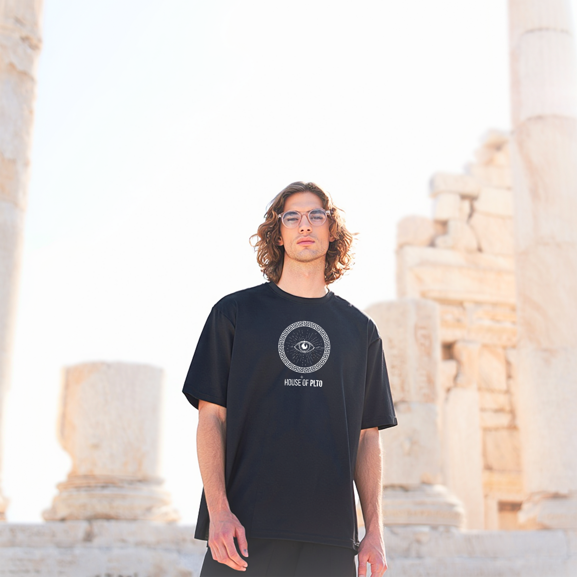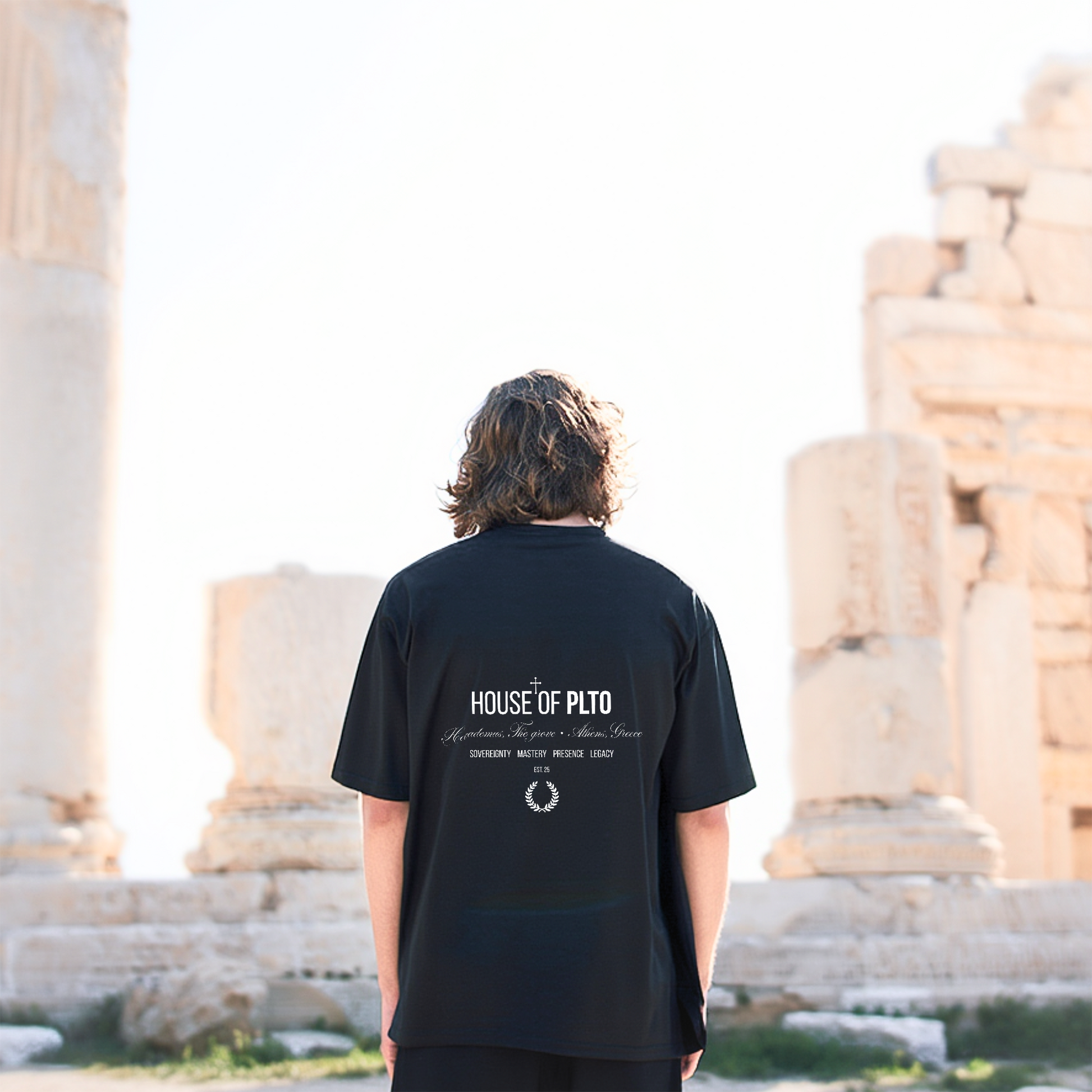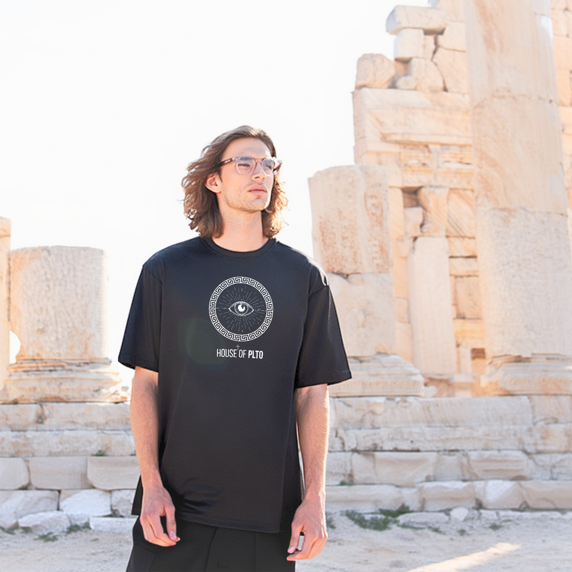 The Sigil Tee carries the all-seeing eye encased in Greek geometry — a circle symbolising unity, order, and the Republic of men committed to mastery. House of PLTO stands as the seal of your purpose.