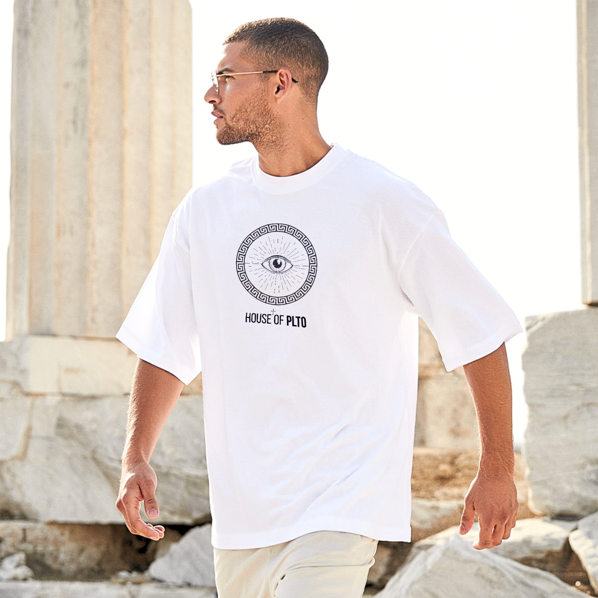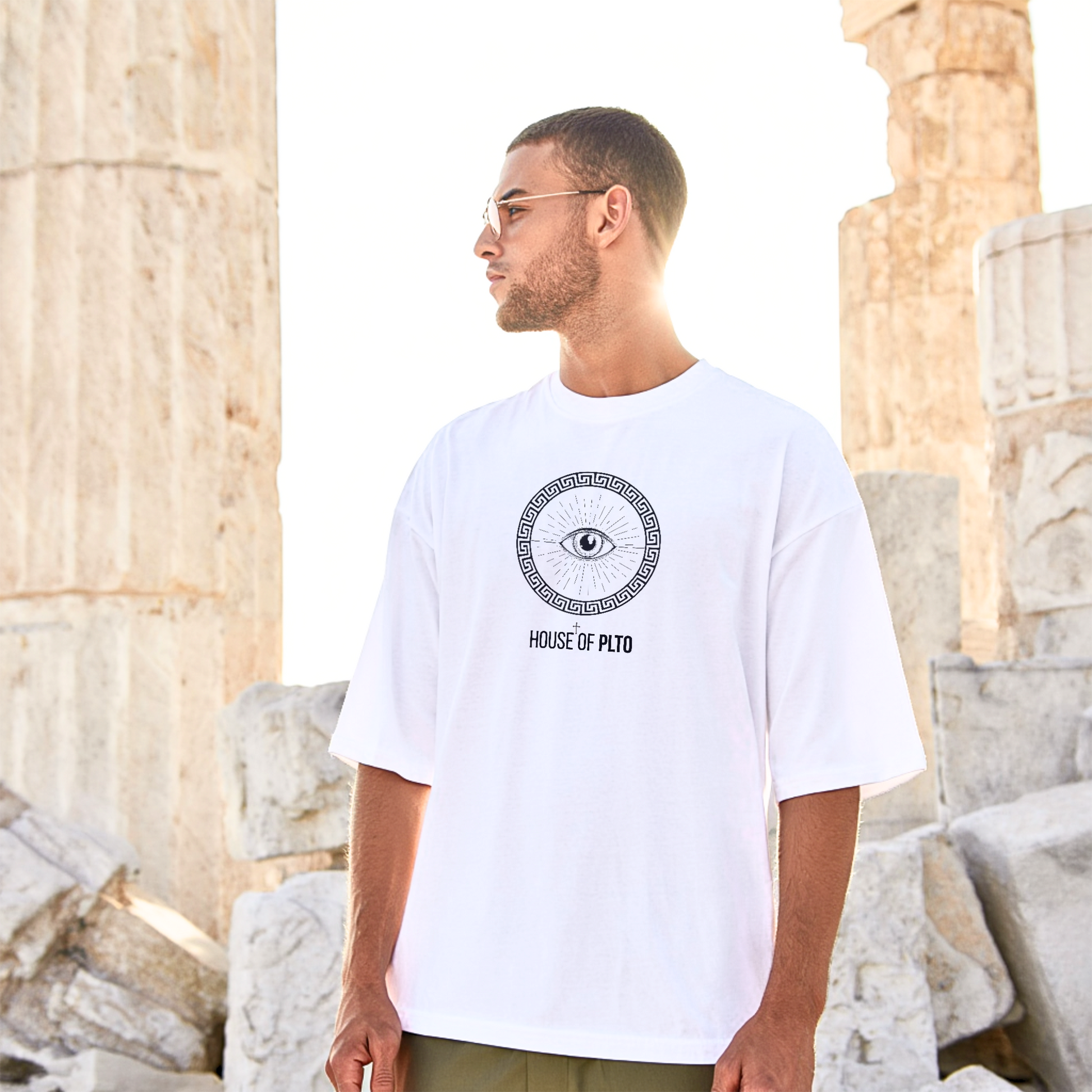 The Sigil Tee carries the all-seeing eye encased in Greek geometry — a circle symbolising unity, order, and the Republic of men committed to mastery. House of PLTO stands as the seal of your purpose.